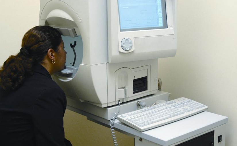 La campimetria consente di studiare la funzionalità del nervo ottico. Uno strumento computerizzato invia stimoli luminosi di varia intensità e grandez…